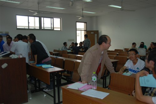 随后,2011级新生有秩序地在不同的教室热情地迎来了自己的导师。7号教学楼不时传出阵阵雷鸣般的掌声。在各自班级的交流会上,导师们向2011级新生系统介绍了本专业的基本情况,并提出了今后学习生活中的一些要求。见面会在和谐融洽的气氛中进行。见面会持续了将近两个小时,所有同学都是“满载而归”,有了对专业和大学的更多了解,对专业前景也充满信心,也消除了初来时的迷惘与困惑。 临近分别,同学们依依不舍。