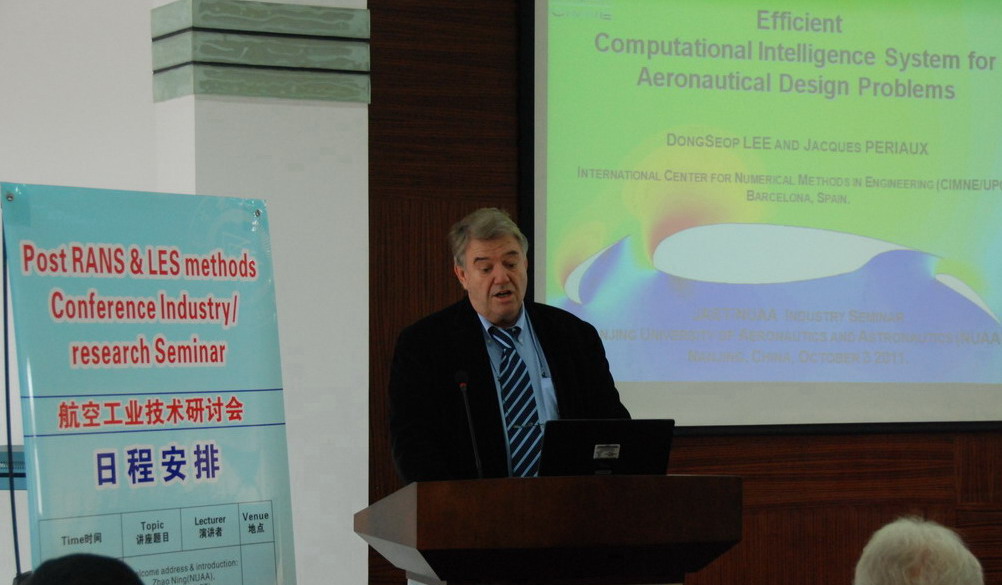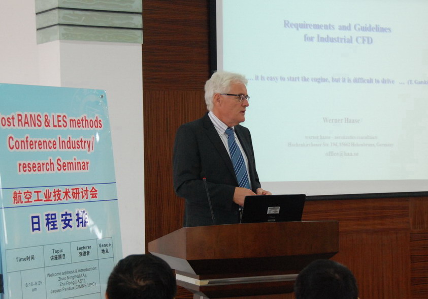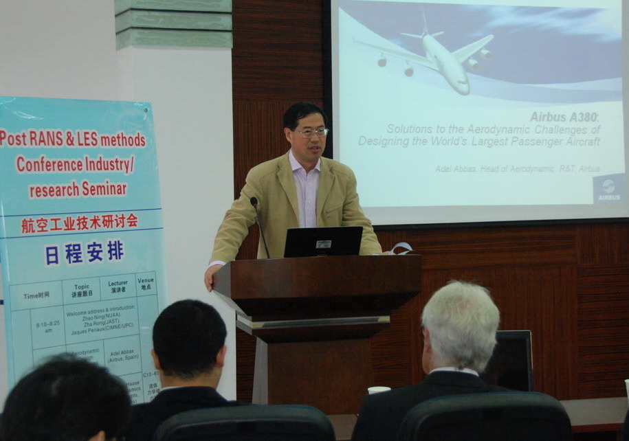 西班牙空中客车公司的Adel Abbas教授、德国空气动力学专家Werner Haase教授、Jacques Periaux教授分别作了题为“Aerodynamic Design Challenges for large Aircraft”、“Requirements and Guidelines for Industrial CFD”、“Efficient Computational Intelligence System for Aeronautical Design”的报告,报告介绍了有关方面研究的最新发展状况和研究成果,引起了公司师生的浓厚兴趣,与会师生就相关问题与来访专家们进行了热烈的讨论。全校师生近50人参加了会议。