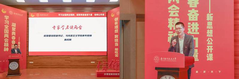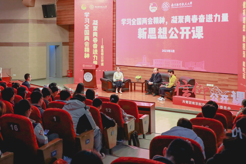 活动分为“人大代表谈两会”、“媒体记者看两会”、“专家学者读两会”、“南航青年学两会”四部分内容,传达学习全国两会精神,师生畅谈学习心得体会。
