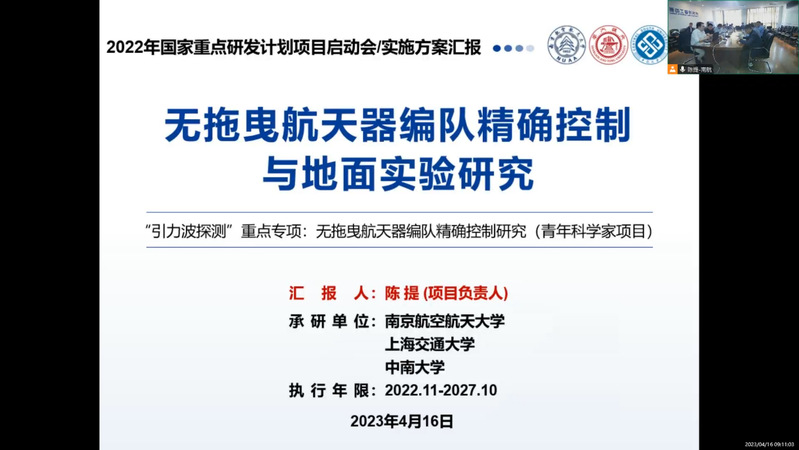 4月16日,科研院组织召开了由公司陈提教授牵头承担的国家重点研发计划“引力波探测”重点专项青年科学家项目的启动会暨实施方案论证会,会议采取线上线下相结合的形式进行。