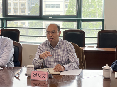 随后,物理公司经理刘友文从公司现状、科学研究两个方面介绍了物理公司的发展情况,并分析了两个公司有代表性的研究方向和科研团队现状,提出了理工融合、学科交叉的合作意愿和方向。