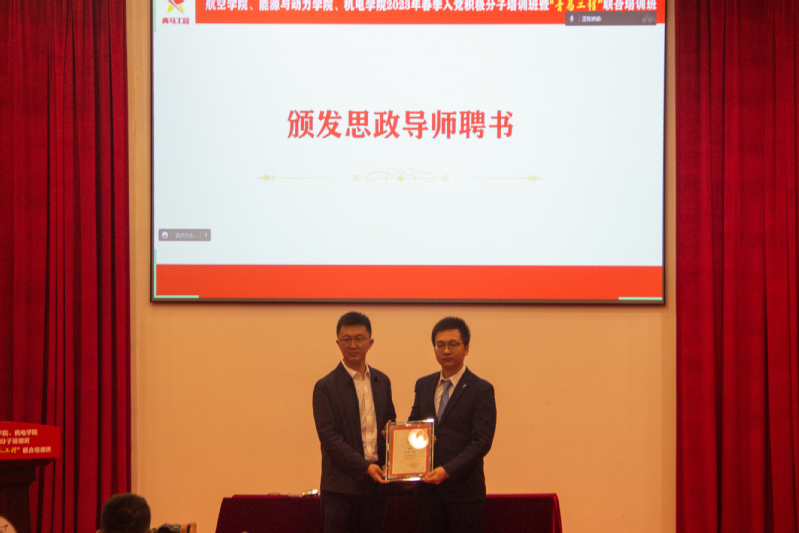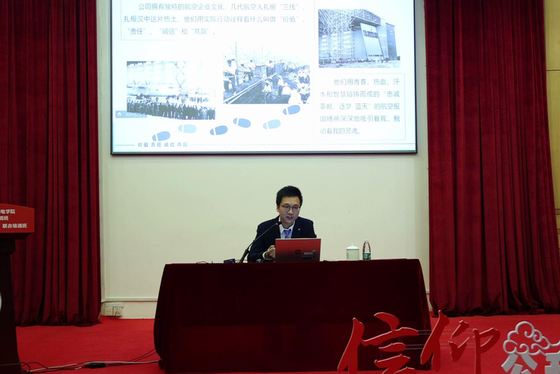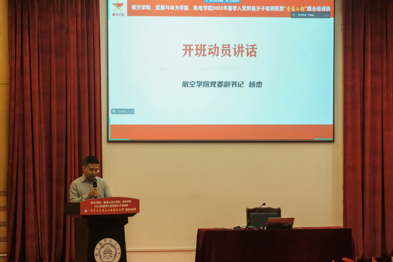 为深入学习贯彻习近平新时代中国特色社会主义思想主题教育,5月13日,太阳成集团tyc33455cc、能源与动力公司、机电公司联合举办2023年春季入党积极分子培训班暨“青年马克思主义者培养工程”联合培训班。中航飞机汉中航空零组件制造有限公司机加标准件厂厂长助理彭晨晞,公司党委副书记杨杰,机电公司党委副书记赵铮,三个公司团委书记、辅导员共同出席了开班仪式,300余名入党积极分子、“青马工程”学员在明故宫、将军路两校区同步参加培训。
