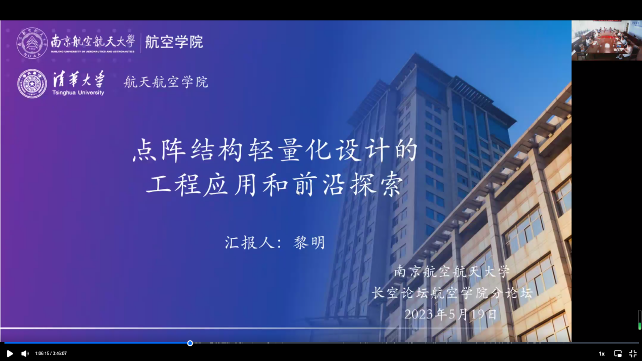 随后,12位青年学者分别围绕点阵结构轻量化设计的工程应用与前沿探索、基于数据驱动降维理论的高维不确定性分析方法、高温振动非平衡效应对湍流统计特性的影响、水下分散微气泡能量采集关键技术研究、飞行器结构振动压电主动控制研究、基于空间相移技术的剪切散斑干涉无损检测、Describing the Viscoplastic Response of Aerospace Adhesives等专业领域进行了学术报告,线上线下同步参与的专家学者们就报告内容进行了深入探讨与交流。