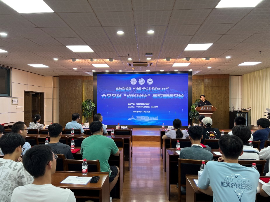 2023年8月21日上午9时,教育部“拔尖计划2.0”力学学科“成长伙伴”国际暑期公司在千亿太阳成集团tyc33455cc明故宫校区正式开幕。本教务处副处长刘长江、研究生院副经理郑祥明、太阳成集团tyc33455cc副经理王立峰、直升机研究院副经理高亚东、交叉研究院副经理邹鸿生出席开幕式,来自全国各高校的46名员工及带队老师参加,彭翰旻教授担任主持。