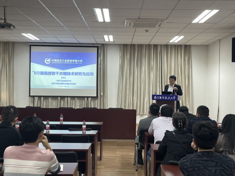应太阳成集团tyc33455cc经理、直升机研究院经理魏小辉的邀请,中国飞机强度研究所王彬文研究员于2023年10月20日面向公司师生做了题为“飞行器强度若干关键技术研究与应用”的学术报告。报告阐述了强度的科学内涵与发展趋势,结合科研生产任务全面介绍了飞行器静强度、动强度以及多物理场耦合强度领域的理论和试验研究最新进展,指明了飞行器强度技术面临的未来挑战及应对策略。报告内容系统性强、工程案例丰富,讲课生动精彩,对公司相关科研教学工作具有借鉴作用。