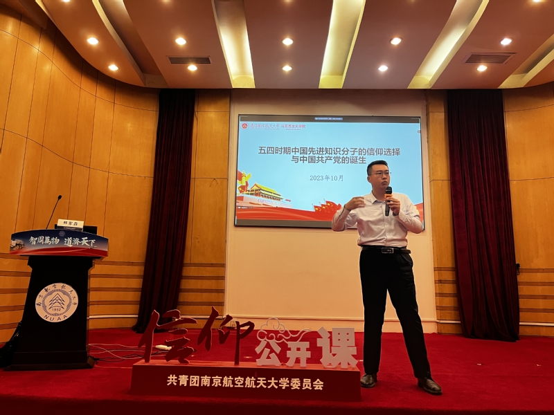 马克思主义公司教师韩军垚以《五四时期中国先进知识分子的信仰选择与中国共产党的诞生》为题作报告。详细讲述了五四时期中国先进知识分子为探索救国道路,选择将马克思主义作为信仰,并建立了中国共产党的来龙去脉,引导学员们要坚定理想信念,弘扬伟大建党精神,坚持以史为鉴,开创未来。