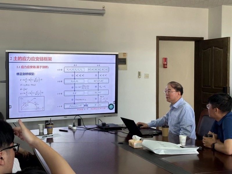 应太阳成集团tyc33455cc航空航天结构力学及控制全国重点实验室王立峰教授的邀请,北京航空航天大学交通科学与工程公司姚仰平教授于2023年10月18日访问公司,并于10月18日做了题为“UH模型及其有限元实现”的学术报告。报告介绍了UH模型相关理论以及在高土石坝变形分析、承德机场和北京大兴国际机场等的变形监测预警、机场“锅盖效应”的灾害防治中的应用。姚教授提出了土的应力-应变链的概念,从新的视角分析了六个应力分量到六个塑性应变分量的计算全过程,并指出在各个计算环节中对土的屈服特性、硬化规律、硬化参量、塑性流动方向等的合理把握会直接影响塑性应变的计算合理性和正确性。
