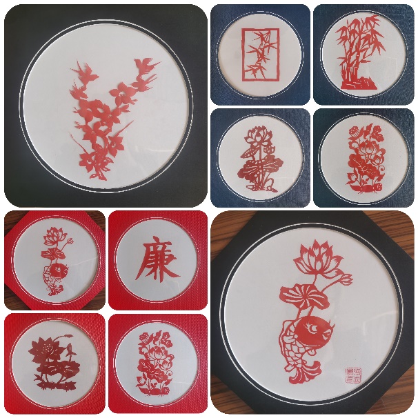 活动邀请公司剪纸社团负责人为在场师生讲解剪纸的魅力及其操作技艺,在其细心讲解与指导下,大家纷纷拿起剪纸素材与剪刀、刻刀,跃跃欲试。经过细细描摹、精剪细刻,一幅幅生动鲜明的作品跃然纸上,栩栩如生的莲花、傲然挺立的竹子、清风飘逸的“廉”字,无一不展示了对廉洁文化和优秀传统文化的理解和诠释。