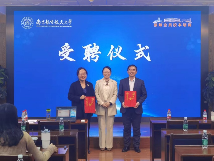 会上,教发中心易洋为两位主讲专家颁发南航高水平教师教学竞赛培育团特聘专家导师证书。