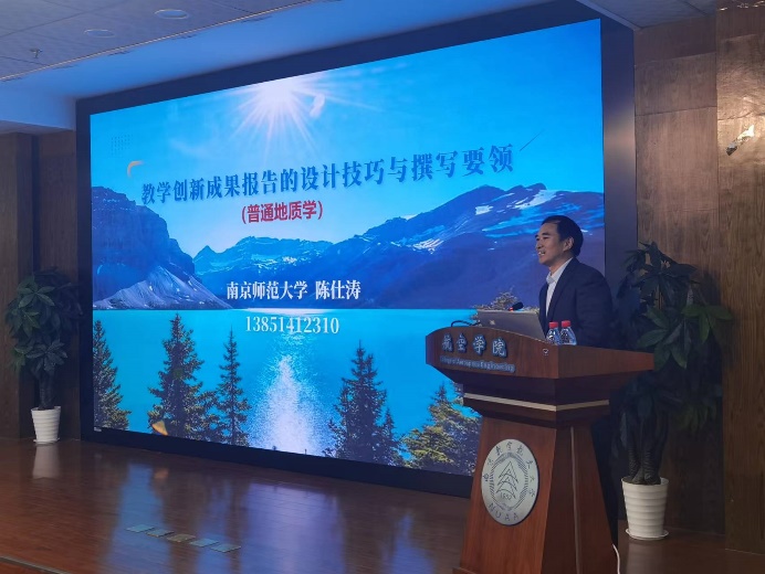 陈仕涛做了“教学创新成果报告的设计技巧与撰写要领”的报告。报告从第四届全国教创赛实施方案的变化展开,详细讲述了竞赛过程中的真实问题、创新特色、创新设计、报告撰写、注意事项等几个方面内容。报告氛围轻松,学习氛围浓重,赢得了与会老师的阵阵掌声。