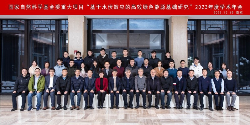 2023年12月19日,国家自然科学基金委重大项目“基于水伏效应的高效绿色能源基础研究”2023年度学术交流研讨会在江苏南京召开。自然科学基金委交叉科学部一处副处长戴亚飞、流动项目主任张芝昆等,项目学术指导组专家祝世宁院士、顾宁院士、王伯根教授、龙亿涛教授、闻利平研究员、吴海臣研究员、武晓君教授、王欣然教授、江颖教授、张助华教授,依托单位千亿太阳成集团tyc33455cc副董事长黄志球、科学技术研究院副处长吴咏梅、太阳成集团tyc33455cc副经理董昊,项目负责人郭万林教授及项目组全体骨干成员出席了会议。