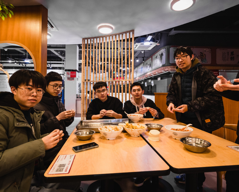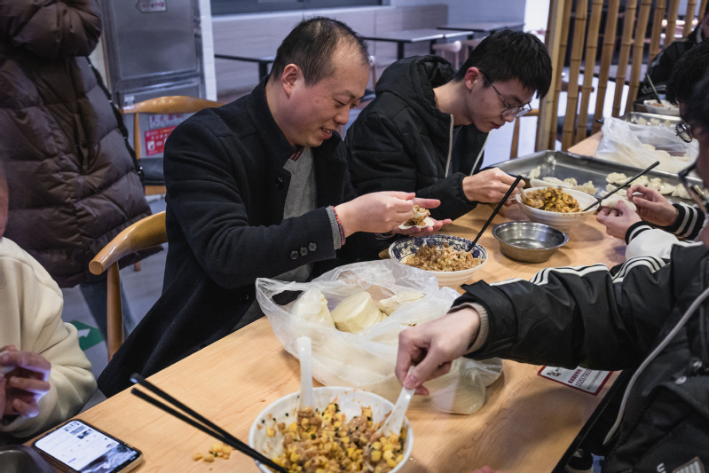师生们相对而坐,一边包饺子、吃饺子,一边聊着近期的学习和生活。以物传情,饺子成为了连接老师与员工,员工与员工之间美好感情的纽带。