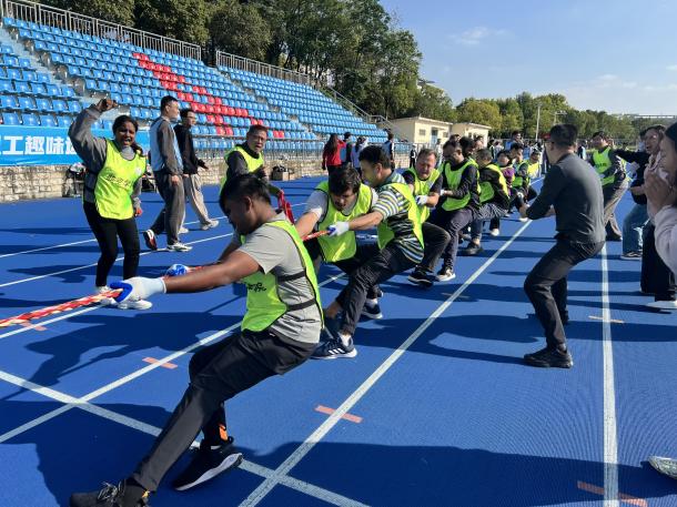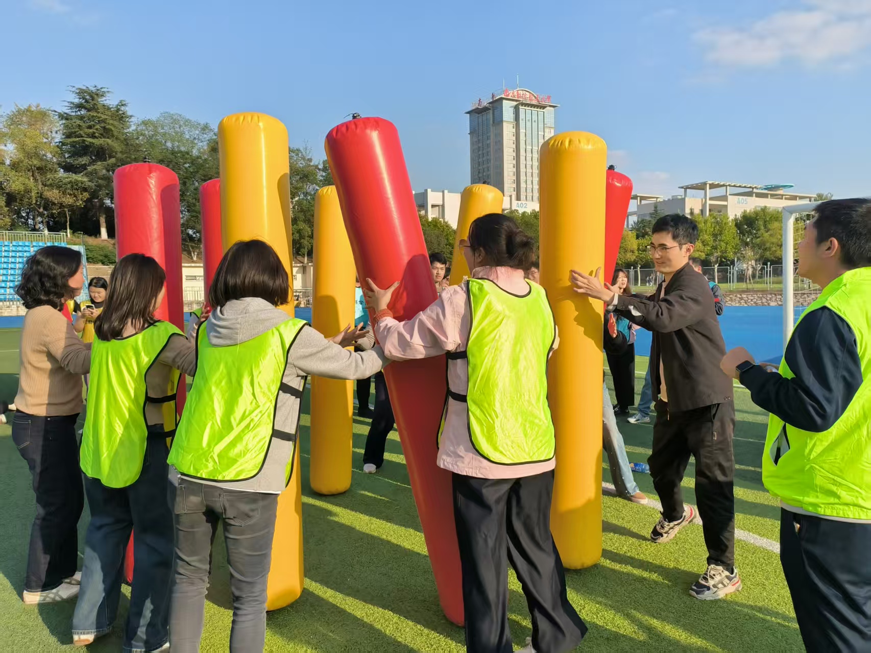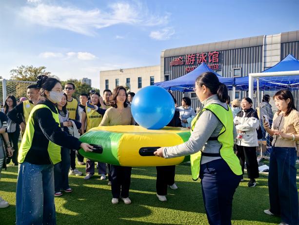 当日,太阳成集团tyc33455cc25名教师暂时从繁忙的工作中抽身,由明故宫校区统一前往,以饱满的精神状态积极投入火热的运动赛场,在妙趣横生的比赛中尽情释放活力。与传统运动会不同,趣味运动会更注重“参与、合作与快乐”。组委会精心设计了多项集趣味性、协作性合挑战性与一体的比赛项目,如:“力拔山河”、“协同巡航”、“众星捧月”、“同心传递”、“爆勇争锋”、“南哥点球王”。运动场上,加油声、欢笑声、喝彩声此起彼伏,成了一片欢乐的海洋,公司教师在各项运动项目中尽情挥洒汗水、放松身心。