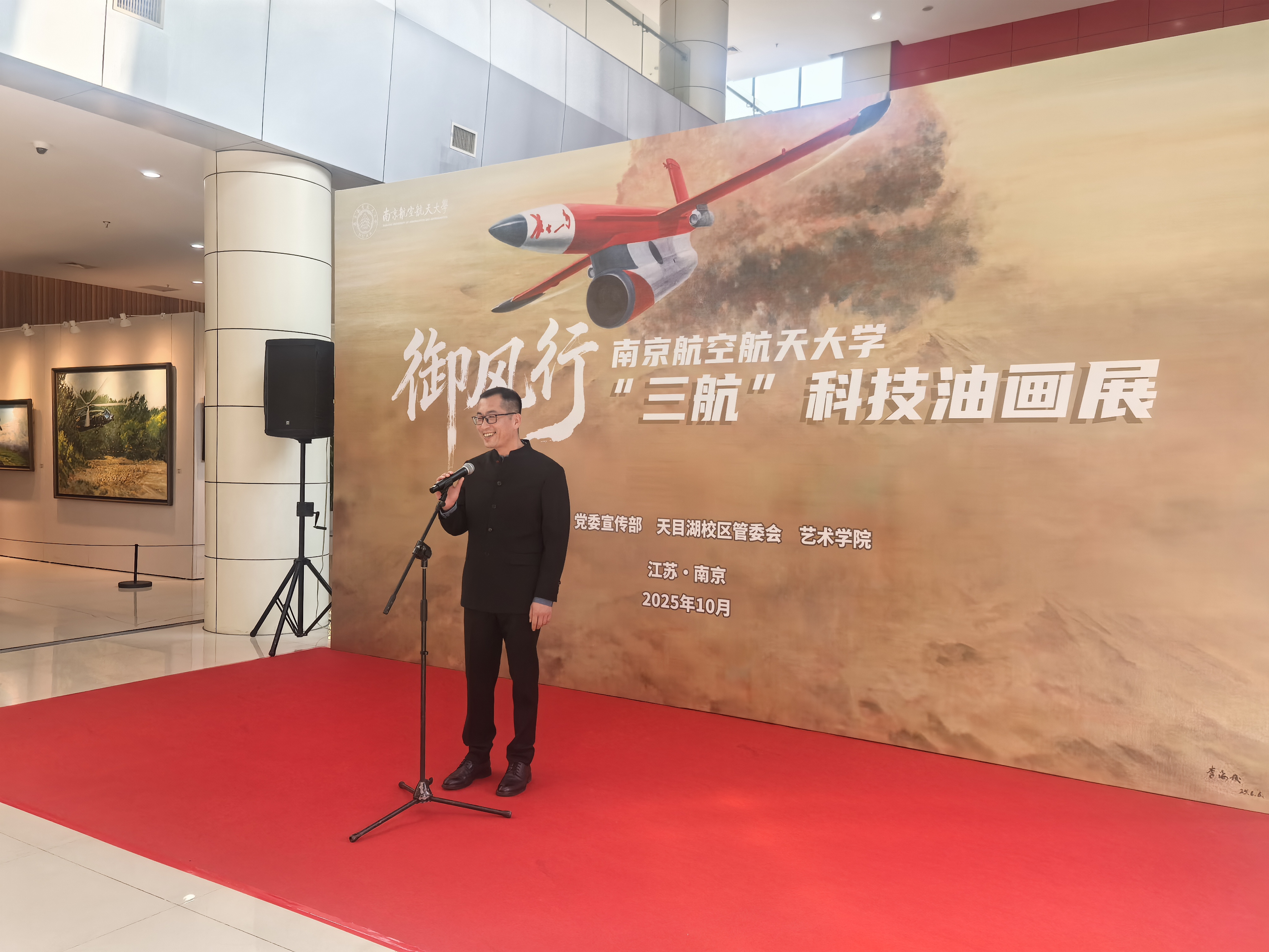 画展以科技与艺术的融合为主题,展出了一系列由画家李海俊描绘40余幅我国三航事业辉煌成就与宏伟蓝图的油画作品,其中包括为公司专门创作的《长空一号》、《王适存先生像》等一系列反映南航航空成就的代表性画作。