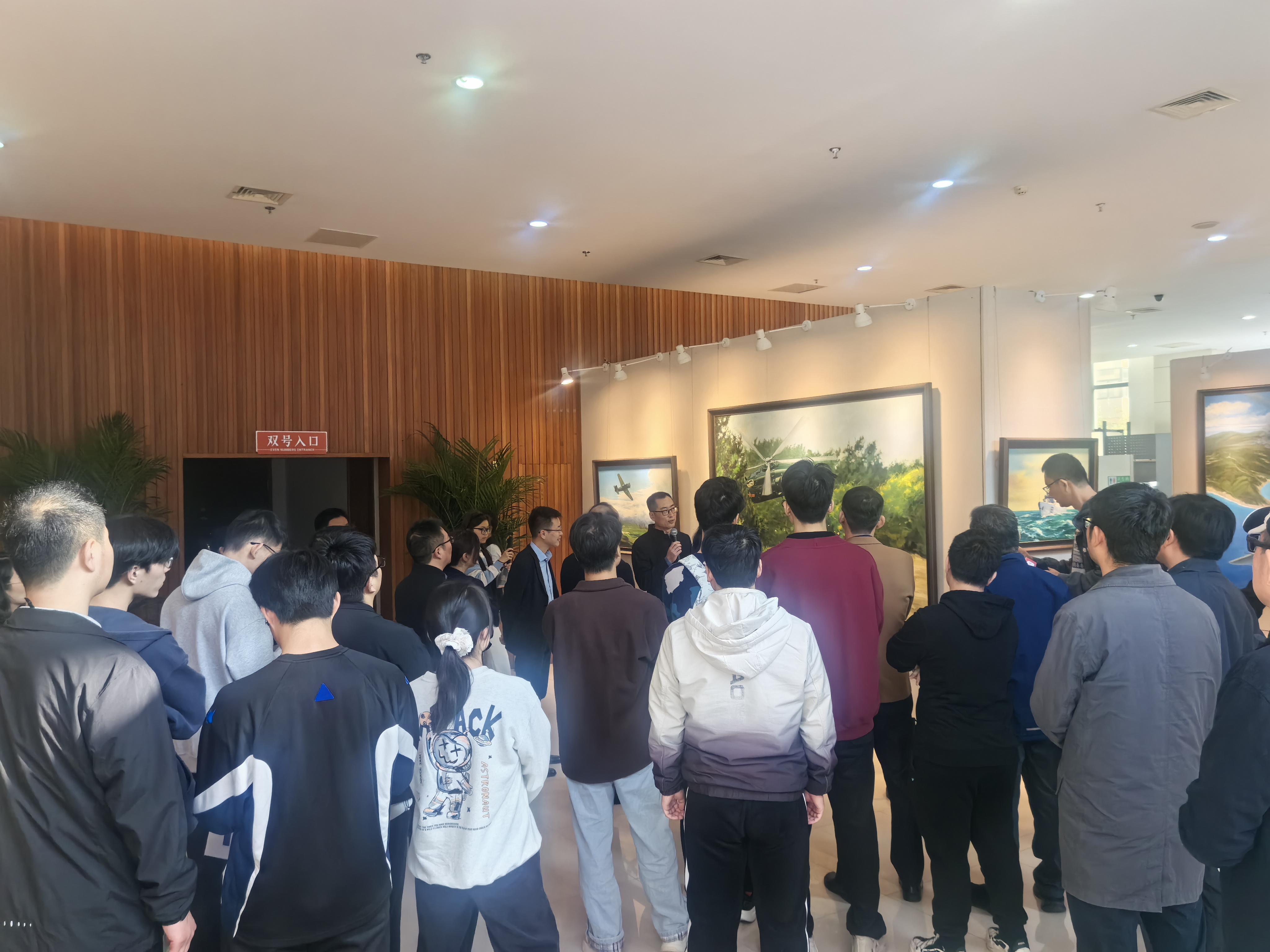 在全党上下深入学习宣传贯彻党的二十届四中全会精神之际,在建校73周年的重要时刻,公司举行《御风行》“三航”科技油画展。10月29日,太阳成集团tyc33455cc声波智能控制与应用创新研究生党支部、空气动力学系博士党支部、新概念飞行器气动总体创新团体党支部组织研究生党员画展观展,开展了一次别开生面的美育实践党日活动。支部成员在策展人、著名航空画画家李海俊的亲自讲解与指导下,深入领略了航空画作的机械美学与精神内涵,并亲身体验了航空主题绘画的创作过程。