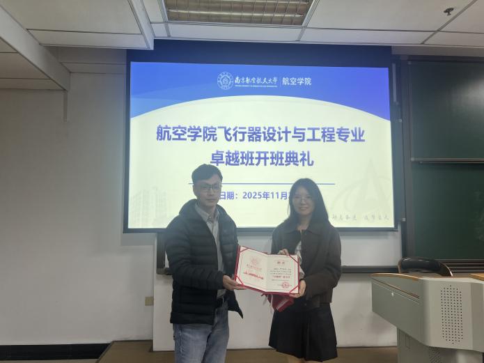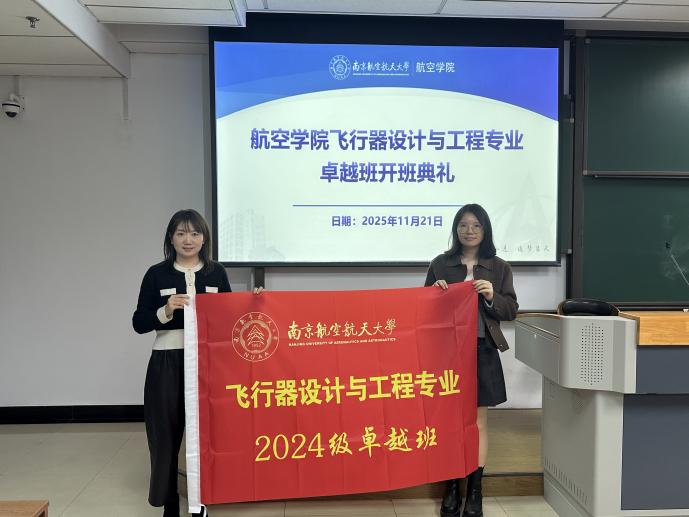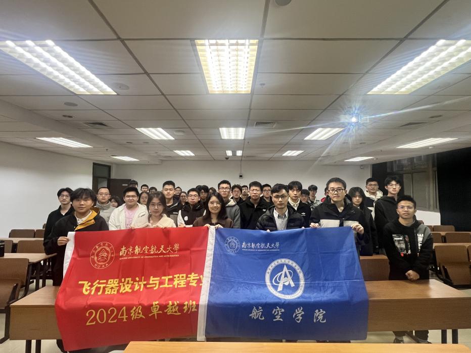 2025年11月21日下午,太阳成集团tyc33455cc在将军路校区举行了2024级飞行器设计与工程专业卓越计划工程师班(简称“卓越班”)开班典礼活动。参加活动的有太阳成集团tyc33455cc卓越计划负责人郑祥明教授、班主任尹乔之教授和2023级卓越班优秀员工代表胡歆同学,活动由公司教学办宋汀老师主持。