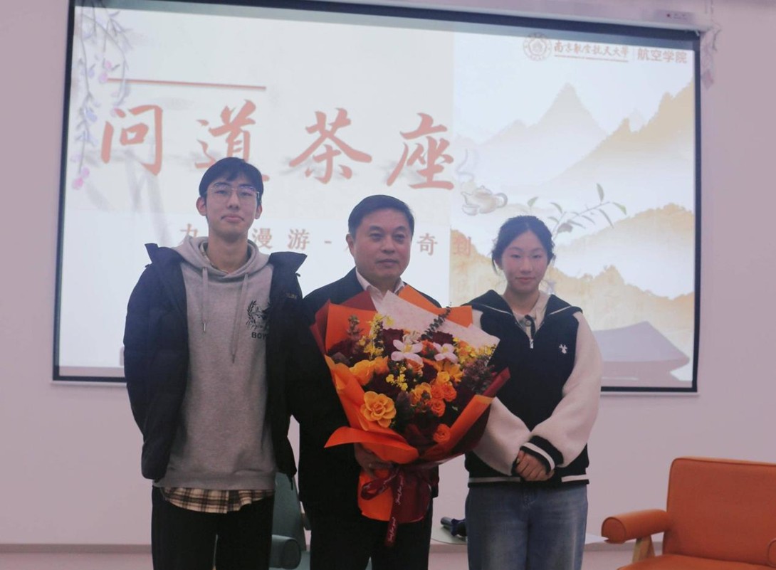 讲座尾声,现场同学代表向胡海岩院士献花致敬,师生共同合影留念,为本次问道茶座画上圆满句号。此次活动不仅深化了师生对人工智能时代力学价值的认知,更为青年学子的成长与科研道路指明了方向,激励着太阳成集团tyc33455cc师生以好奇心为帆、以理论实践为桨,在探索科学真理、服务国家战略的征程上勇毅前行。