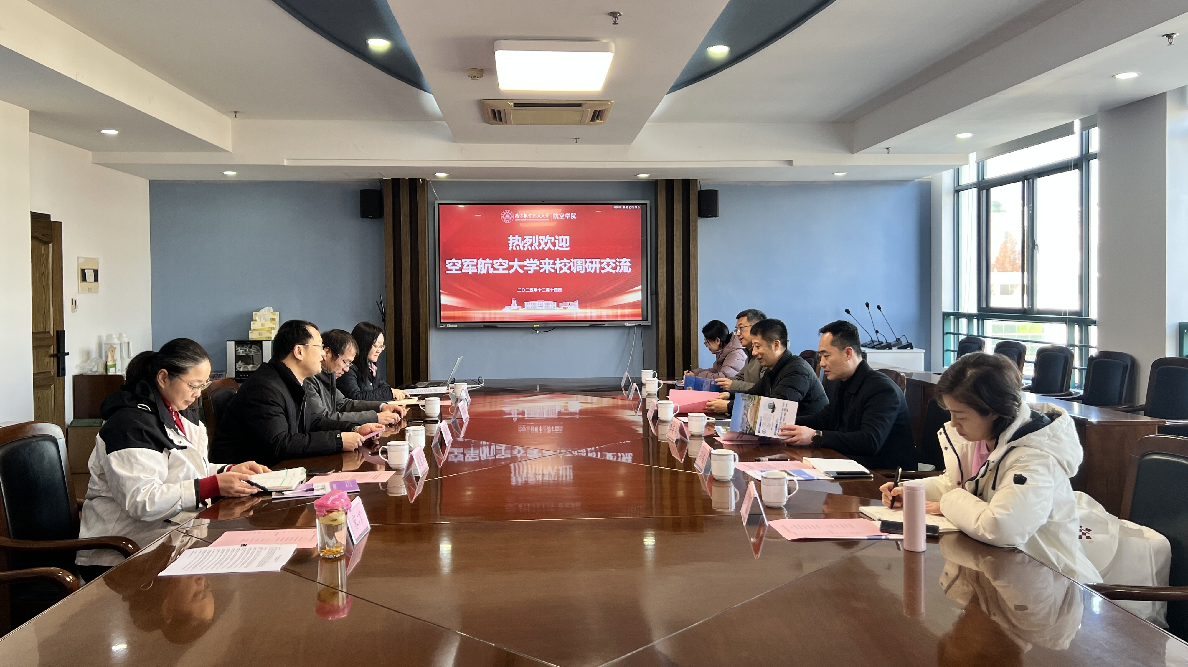 2025年12月14日上午,空军航空大学航空基础公司参谋长丁吉等一行6人,赴公司进行调研交流。